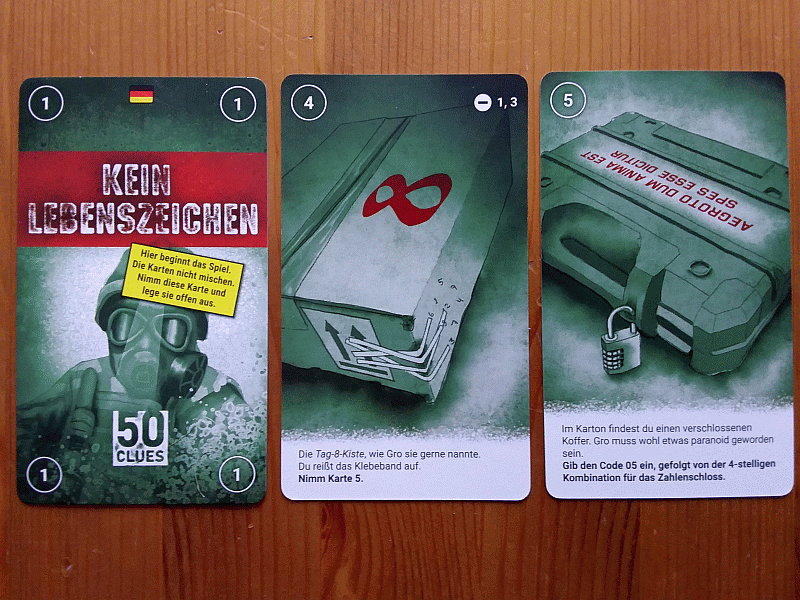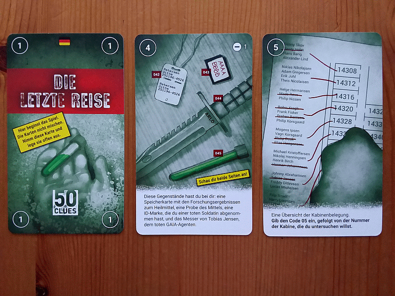 Die Geschichte: Mit zitternden Händen öffnest du den Karton vor dir. Deine Schwester Gro nannte ihn die Tag-8-Kiste und erklärte: "Falls du nicht jede Woche von mir hörst, brauche ich Hilfe. Öffne dann diese Kiste." Sie hat vor ihrer Abreise nicht verraten, was ihr Auftrag ist, aber die Angst in ihren Augen war unverkennbar. Als Expertin für biologische Kampfmittel arbeitest sie schon länger für das dänische Militär, doch dieses Mal ist etwas anders als sonst. Was ist nur geschehen und wie kannst du Gro helfen? In der Rolle von Sigrid begibst du dich auf eine gewagte Rettungsmission. ![]() Kein Lebenszeichen (Kurzbewertung): Kein Lebenszeichen (Kurzbewertung folgt...) |